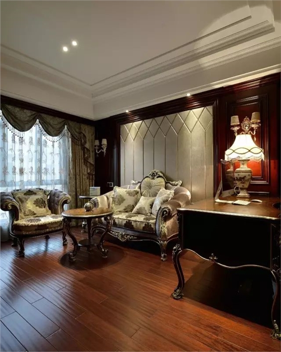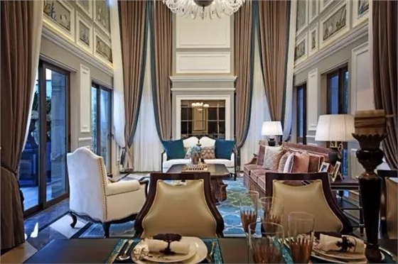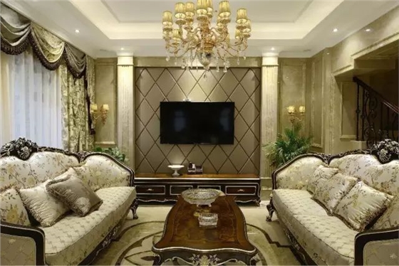 整木定制客廳的家具陳列,傳統中透著現代,現代中揉著古典。設計師力求表現一種強烈的新古典主義風格,并融入巴洛克風格的華麗與精致,顯得優雅大氣。
