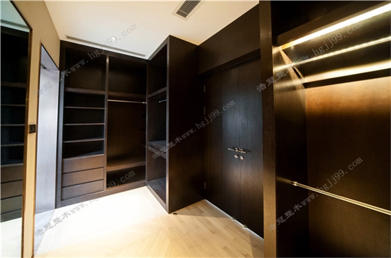 整木定制整體衣帽間的尺寸考慮因素很多,比如柜子的長度要以床的長度為參照物,大面積臥室里柜子的高度以略低于天花板為宜,高的柜子可以減小大臥室的空蕩感,小面積臥室的柜高則以低于臥室窗頂為宜,高柜子會使小臥室顯得擁擠,選擇矮小的衣物柜比較好。