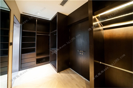 每個家庭都想有一間單獨的整體衣帽間,可以存放自己所有的衣服、飾品。在布局方面如果需要懸掛的衣服不是太多,可以把更多的空間留給抽屜和格子,這樣對于一些體積比較小或者比較雜的小物品就可以一網打盡而又不顯凌亂了